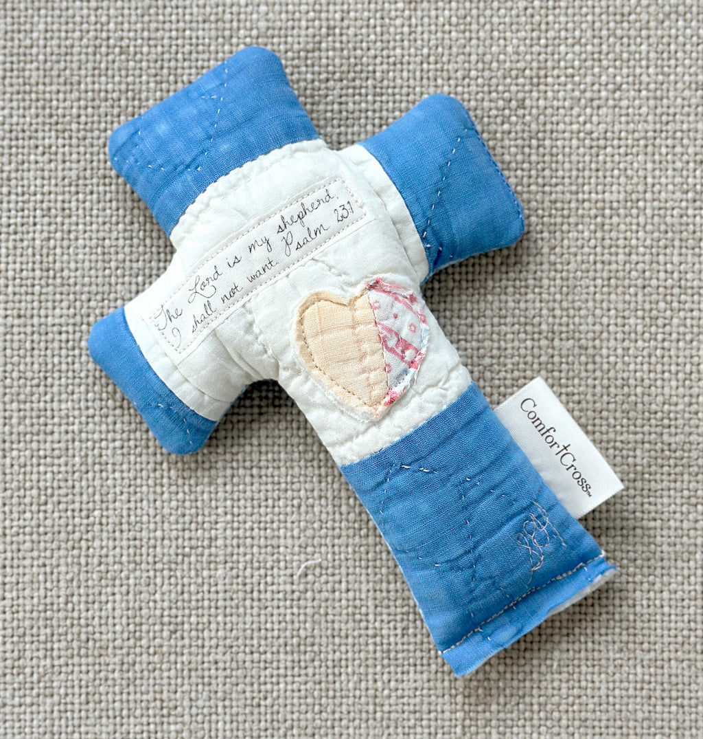Comfort Cross with Prayer Pocket-Bless the Blue (Matthew 28:20) Lavender Scent