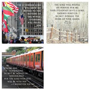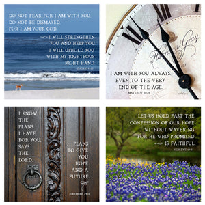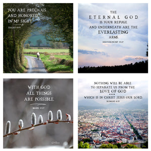 31 Days of Promises is a collection of Scripture and travel photography, designed to give hope and encouragement during times of uncertainty. We all need reassurance that God's promises remain the same in spite of our circumstances, and we pray that these reminders offer assurance of His presence, His provision, His guidance, and His love. An acrylic holder is included for display on a desk or tabletop.