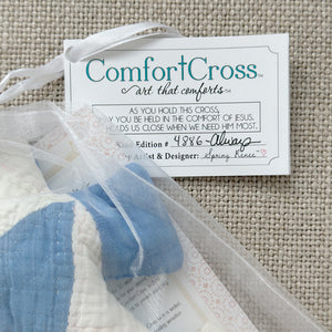 Our Comfort Crosses from Spring Renee are soft, weighted hand-made crosses that fit perfectly in your hand.  Each cross is prayerfully sewn by Spring and her staff, combining new, vintage, and antique textiles.  Each one is a unique design with words of love and encouragement stitched onto them.  The weight of the cross is a perfect reminder of the Lord's presence with you as you hold it in your hand, and the words serve as a reminder of all that we know is true.