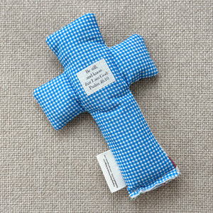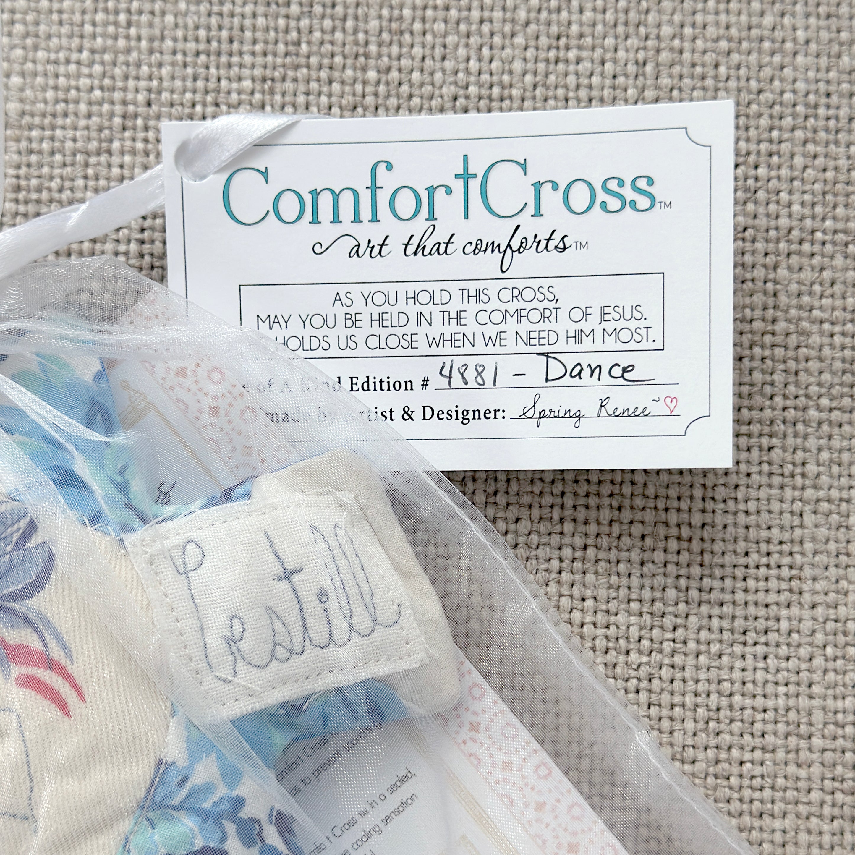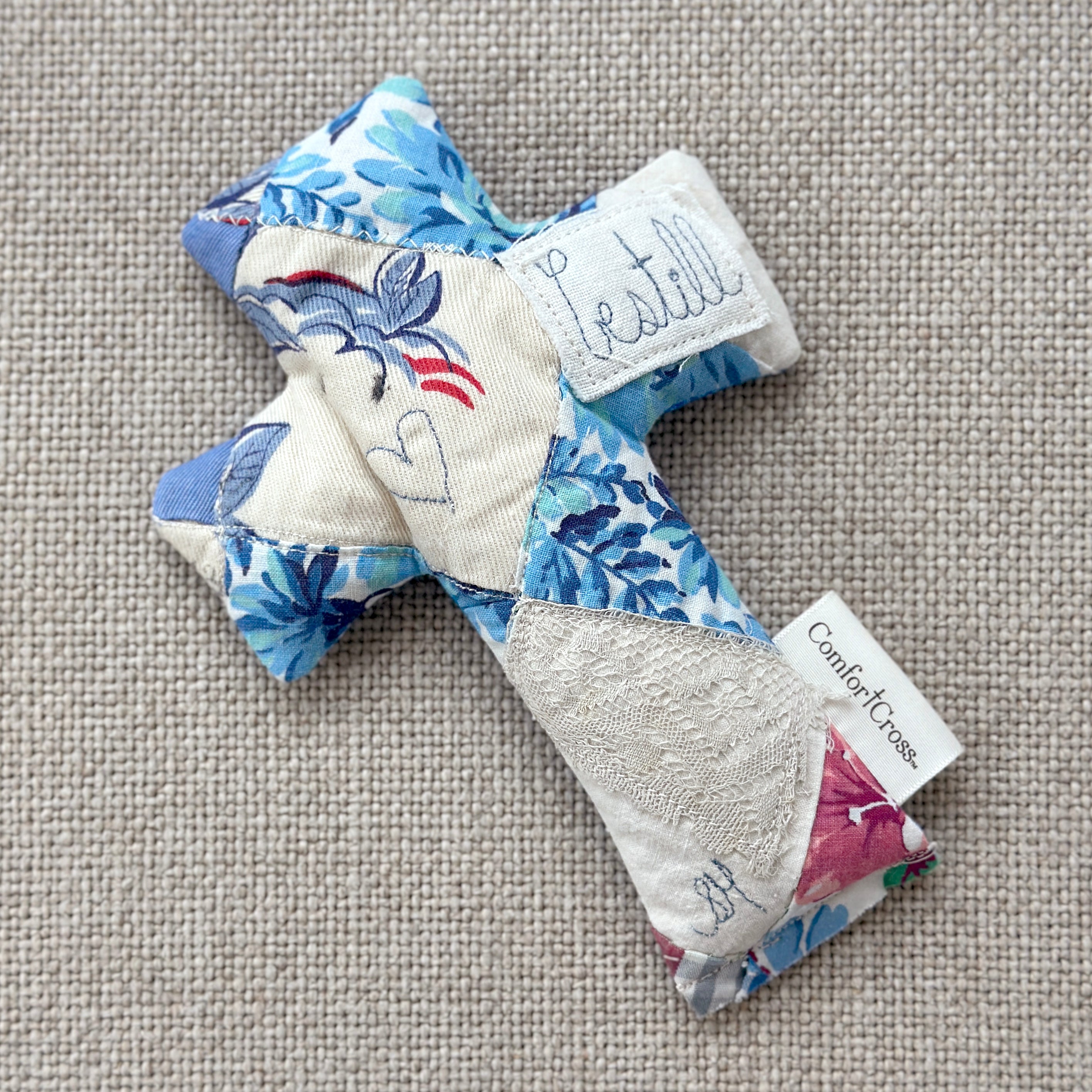 Our Comfort Crosses from Spring Renee are soft, weighted hand-made crosses that fit perfectly in your hand.  Each cross is prayerfully sewn by Spring and her staff, combining new, vintage, and antique textiles.  Each one is a unique design with words of love and encouragement stitched onto them.  The weight of the cross is a perfect reminder of the Lord's presence with you as you hold it in your hand, and the words serve as a reminder of all that we know is true.