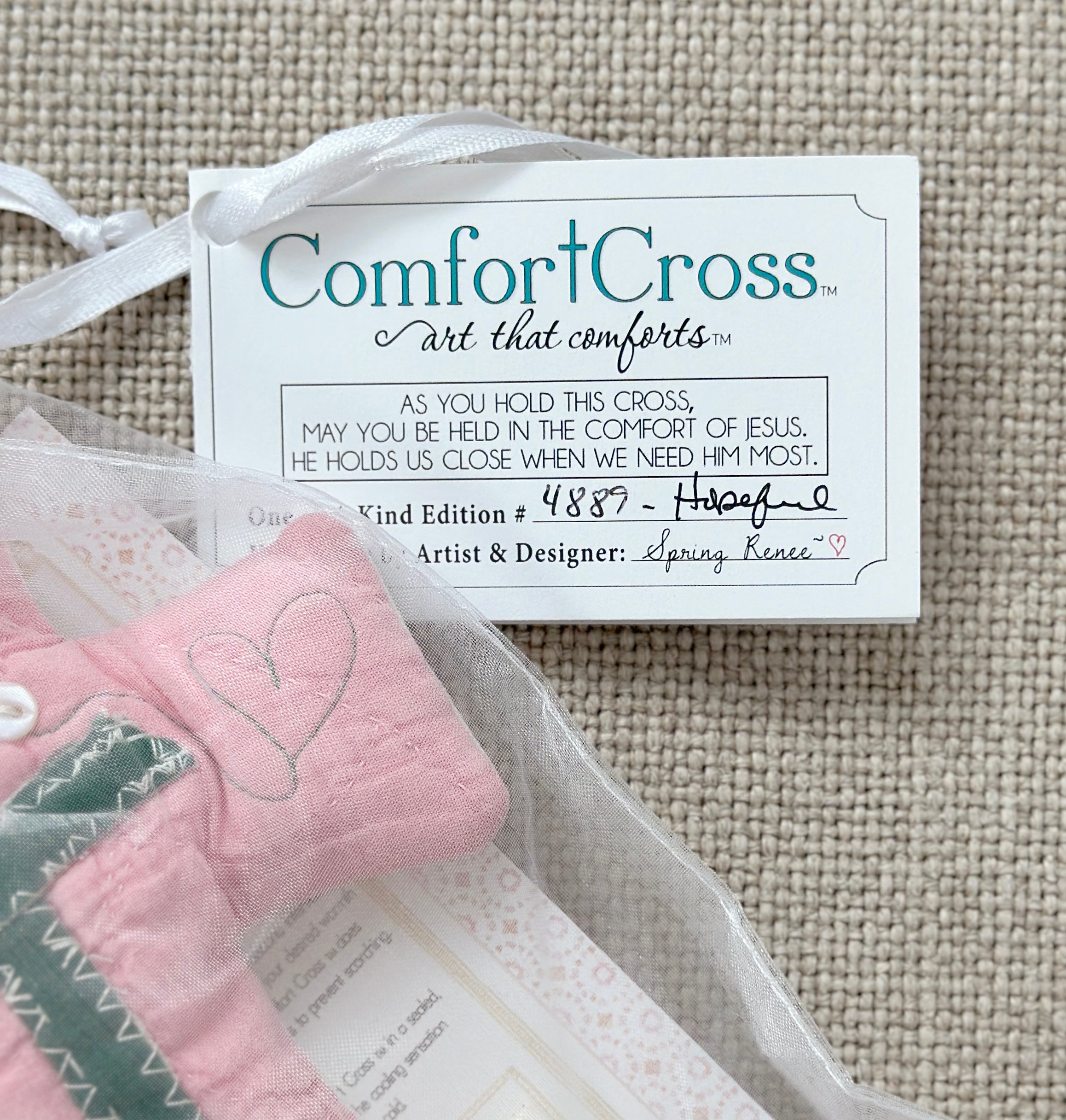 A message from Spring--"I hope that Comfort Cross makes its way into a valued place in your home, prayer time, and your life.  Each day I work on them, I pray for you and hope that each one will make a difference in each owner's life, and that gives me the encouragement I need to keep going.  I hope you find comfort in laying your cares at the cross."