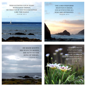 Join us as we walk through Psalm 103 with images of the Northern California coast. Each verse is paired with a beautiful image and gathered into a collection of Mini Prints available in our popular Boxed Mini Print Collection. It's perfect as a gift for yourself or someone who would love the encouragement of this beautiful Psalm.